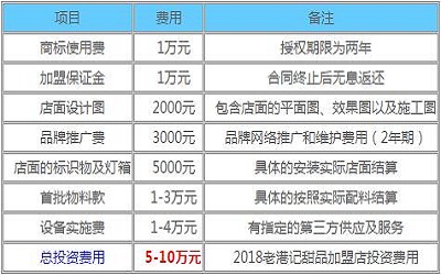那么,老港记甜品加盟费是多少钱?老港记,只需5万元就能加盟的好品牌!