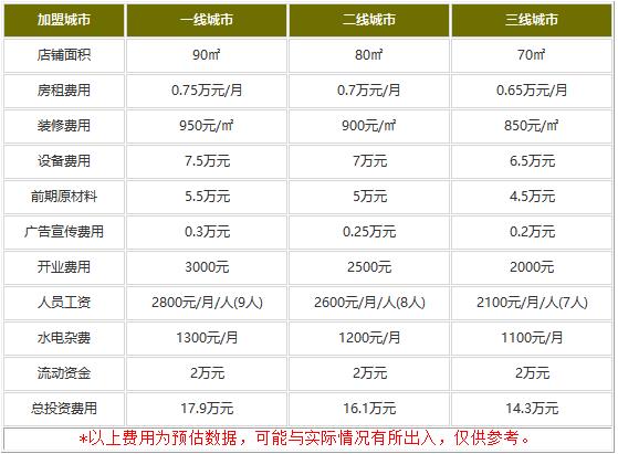 以上数据能看出,开一家70-90㎡的六婆串串香加盟店,总投资费用在14.3-17.9万元之间。投资者还可以有更多开店选择,当前的数据只是预估,具体费用要看投资者店铺的选址、面积、装修等因素所决定。因此,你不要担心自己没有充足的资金,总部会提供不同的方案,让每个人都能够开店赚钱。如果你想要了解具体的费用详情,可以通过下方留言处进行咨询。