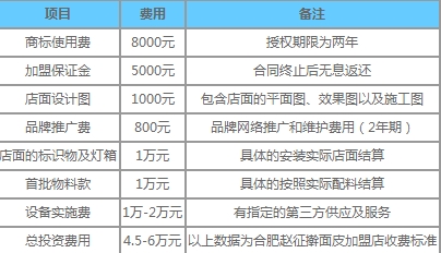 以下是加盟赵征擀面皮的每项费用数据明细: